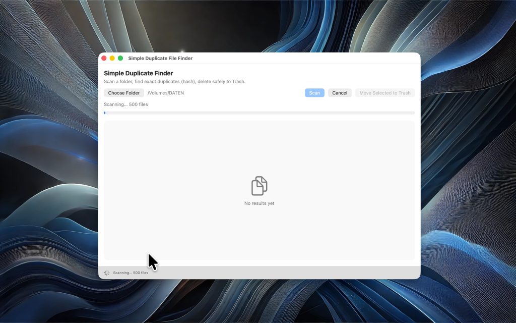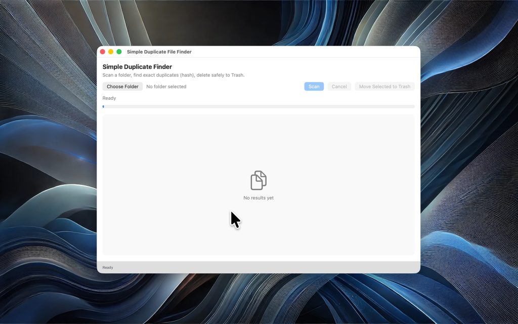 Duplicate File Finder is a high-performance macOS application designed to detect and safely remove duplicate files.